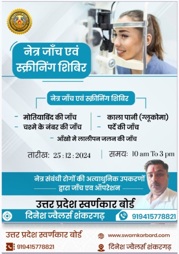 वृहद निशुल्क नेत्र रोग जांच एवं मोतियाबिंद ऑपरेशन शिविर का आयोजन 25 दिसम्बर 2025