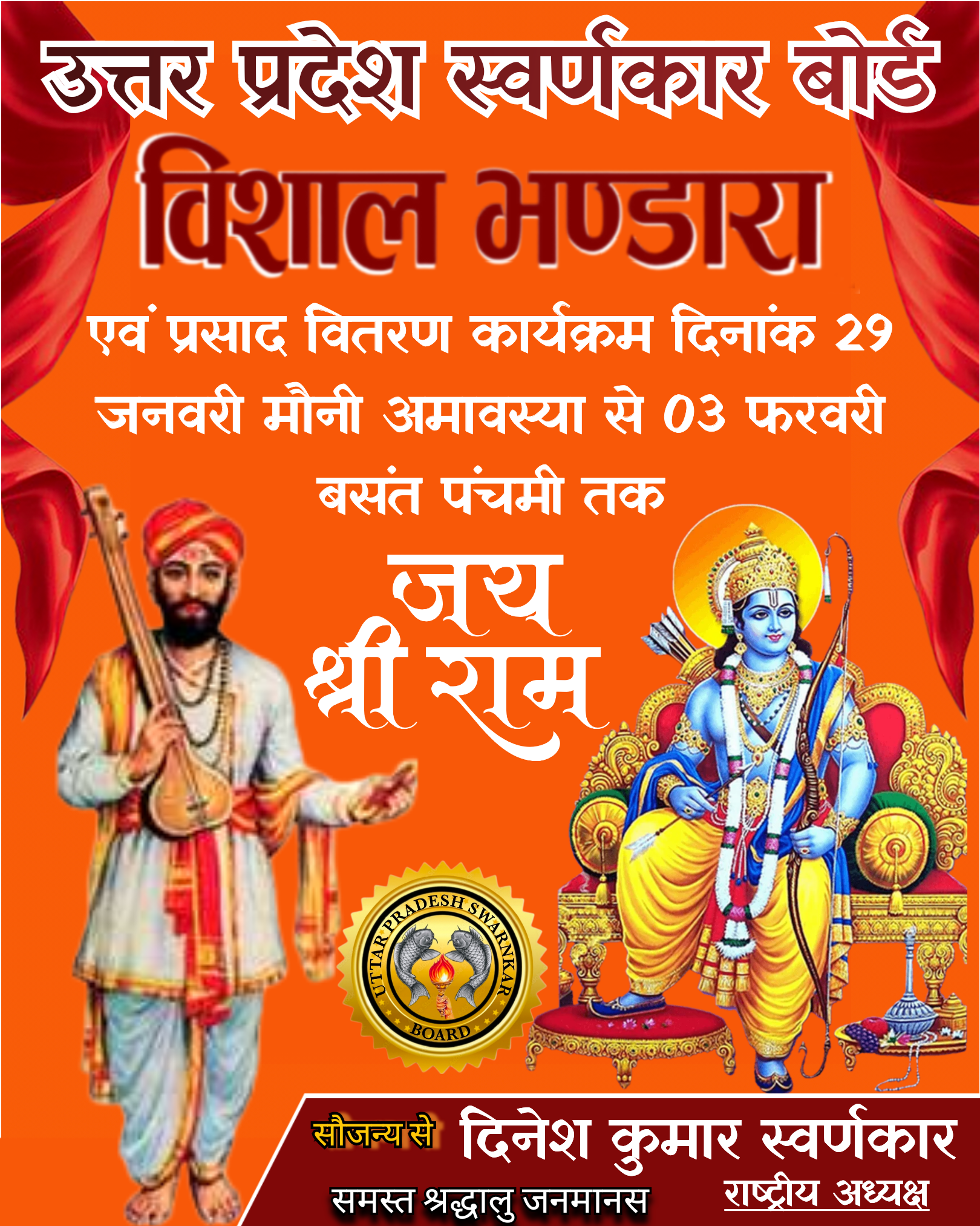 विशाल भण्डारा एवं प्रसाद वितरण कार्यक्रम में आप सभी की सहयोग एवं सहभागिता अनिवार्य है
